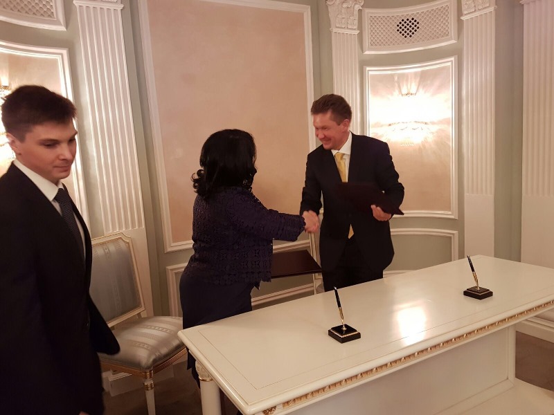 Председателя на Управителния съвет на ПАО "Газпром" Алексей Милер с Министъра на енергетиката на Република България Теменужка Петкова