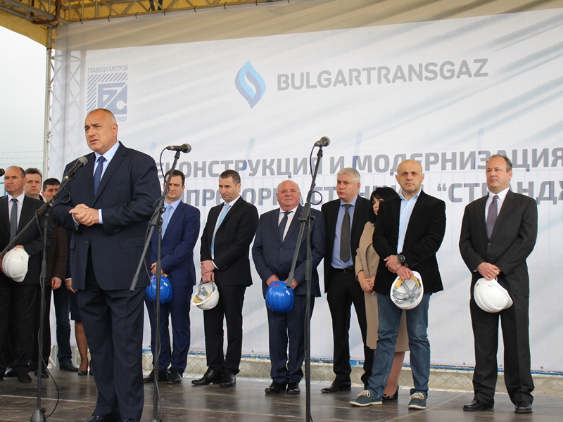Mинистър-председателят Бойко Борисов, вицепремиерът Томислав Дончев, Министър Петкова, кметът на Бургас Димитър Николов, кметът на Ямбол Георги Славов, посланикът на САЩ у нас Н. Пр. Ерик Рубин на откриването на компесорна станция "Странджа"