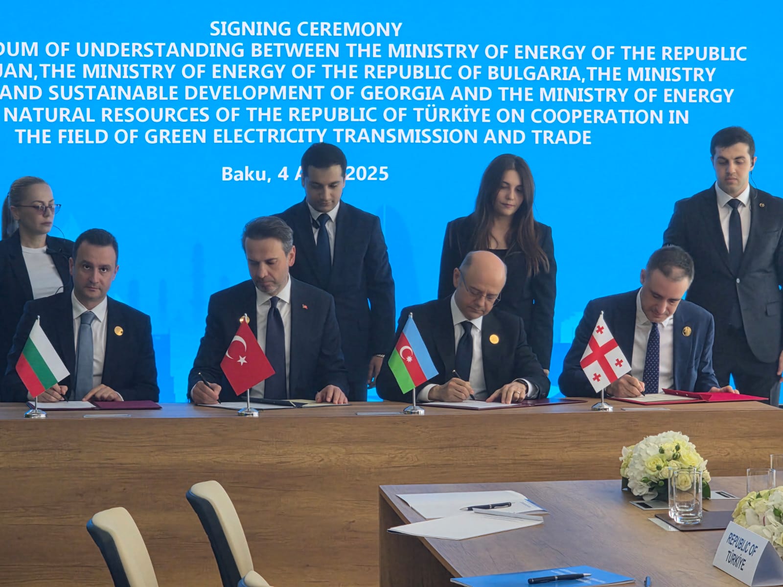 Документът беше подписан от министрите на енергетиката на България и Азербайджан Жечо Станков и Парвиз Шахбазов, министъра на енергетиката и природните ресурси на Турция Алпарслан Байрактар и заместник-министъра на икономиката и устойчивото развитие на Грузия Вахтанг Цинцадзе.