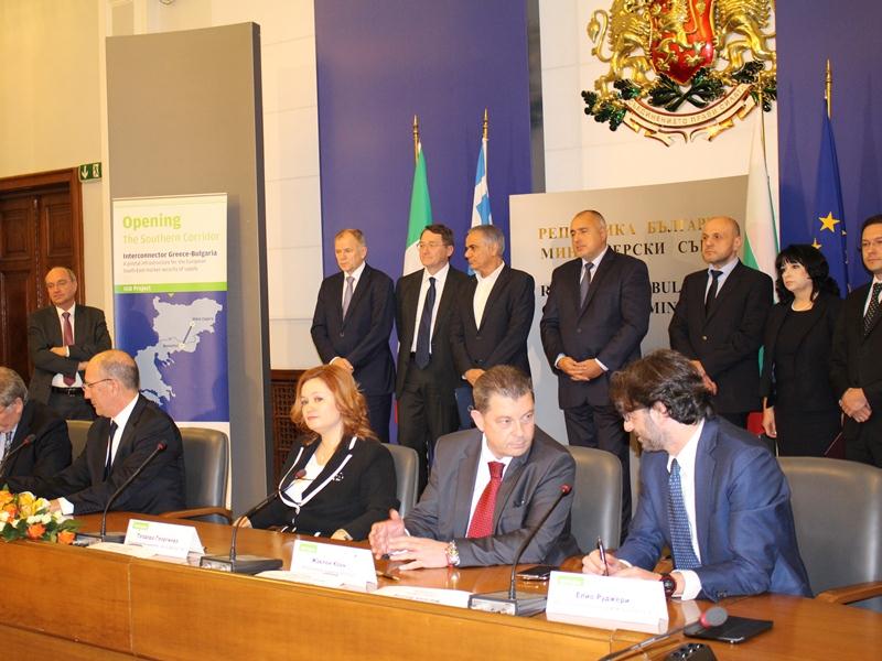 Фотогалерия 10.12.2015 Акционерите в смесената компания "Ай Си Джи Би" (ICGB), подписаха днес окончателното инвестиционно решение за изграждане на междусистемната газова връзка Гърция – България свали снимката Подписване на окончателното инвестиционно решение за интерконектора Гърция - България свали снимката Подписване на окончателното инвестиционно решение за интерконектора Гърция - България свали снимката Подписване на окончателното инвестиционно решение за интерконектора Гърция - България