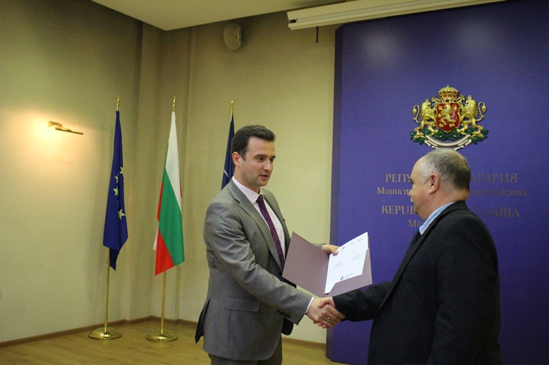 Заместник-министърът на енергетиката Жечо Станков при връчването на договорите на газоразпределителни дружества в страната за газифициране на жилищни сгради като мярка за енергийна ефективност