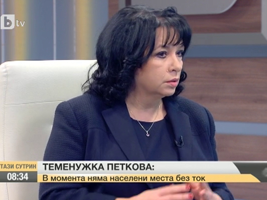 Министърът на енергетиката Теменужка Петкова в предването "Още от деня" по Българската национална телевизия